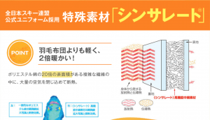 シンサレートR高機能中綿素材では、暖かさというあいまいな