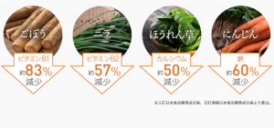 例えば、ほうれん草のカルシウム量は、半分にまで減少。